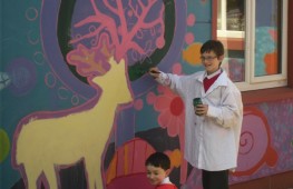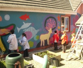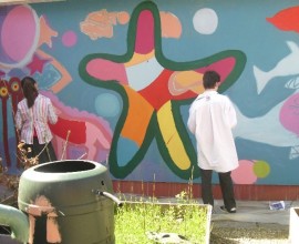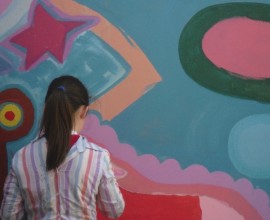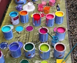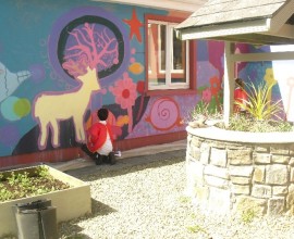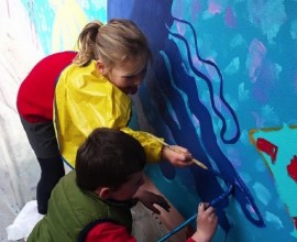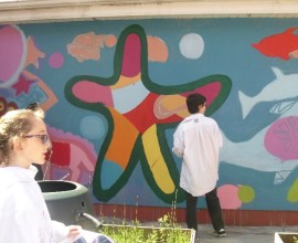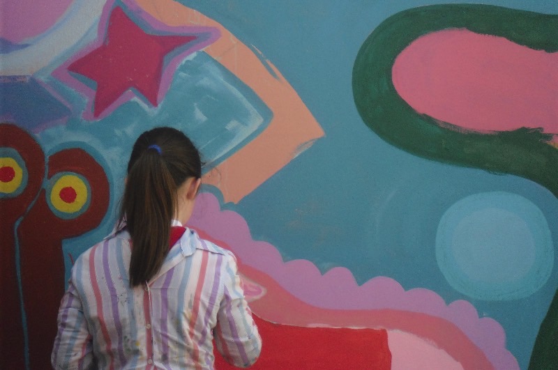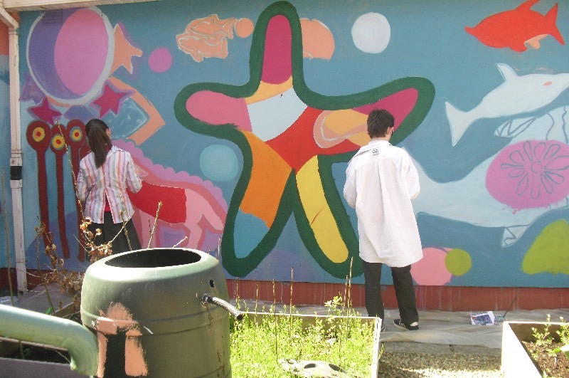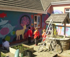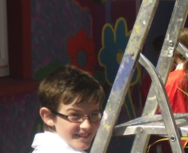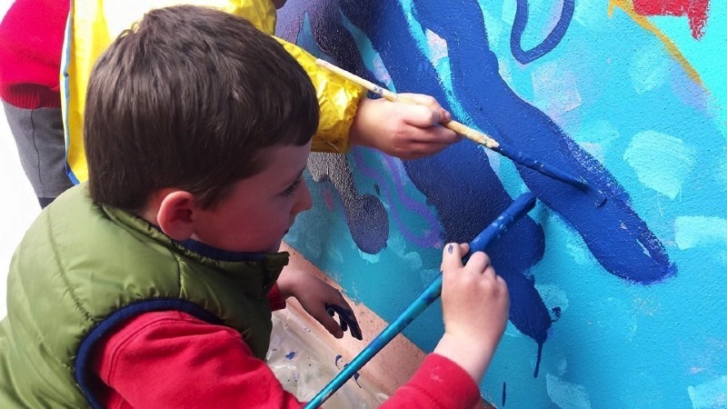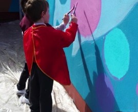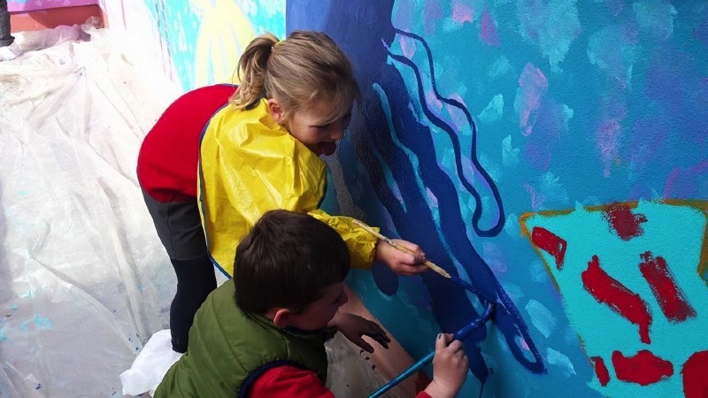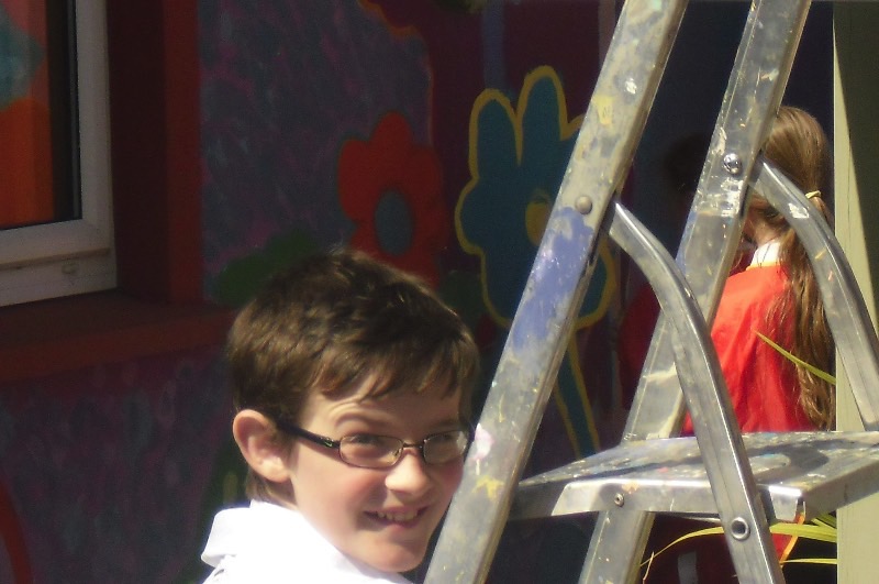Pupils have fun painting the school walls!