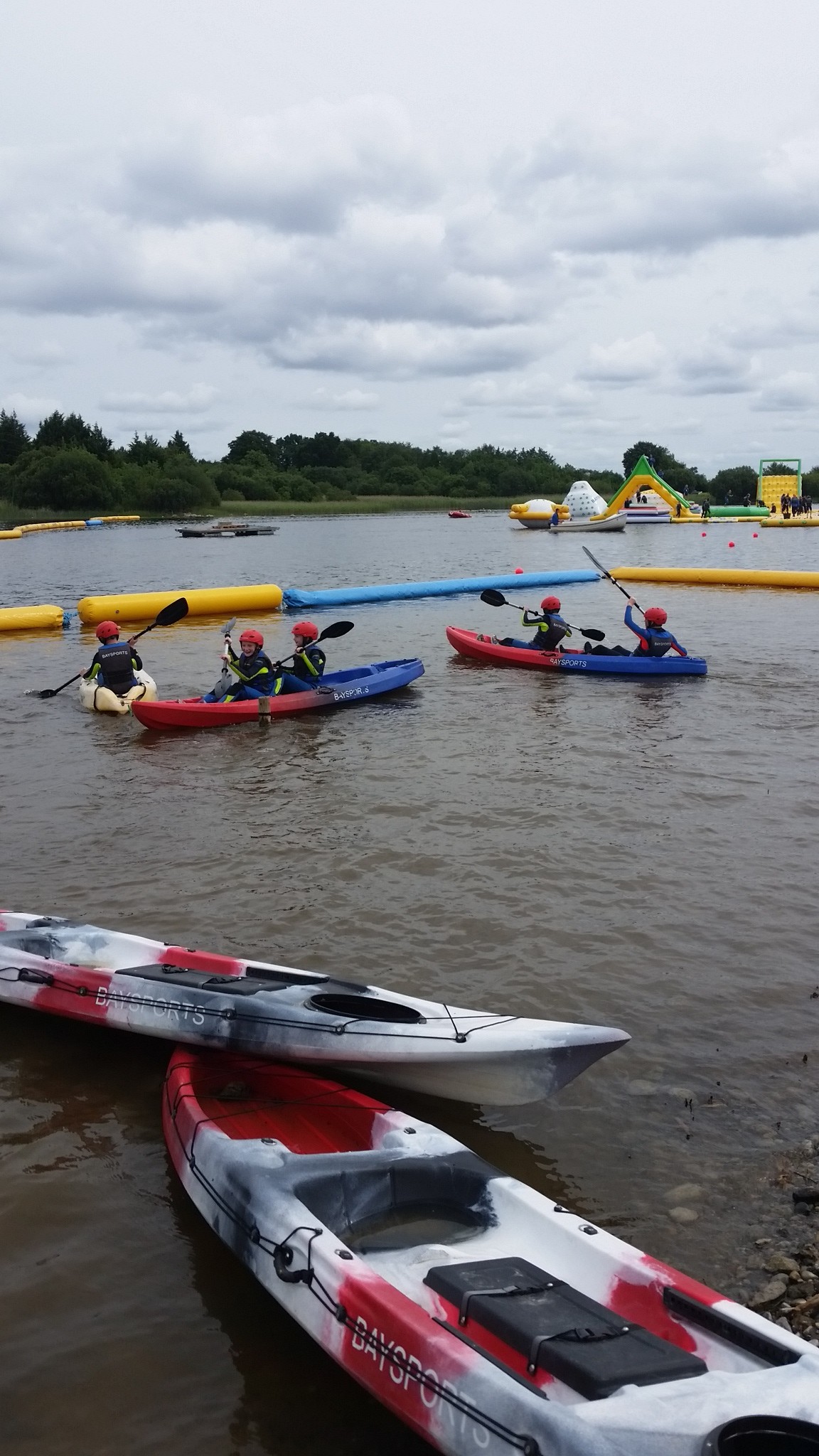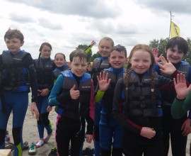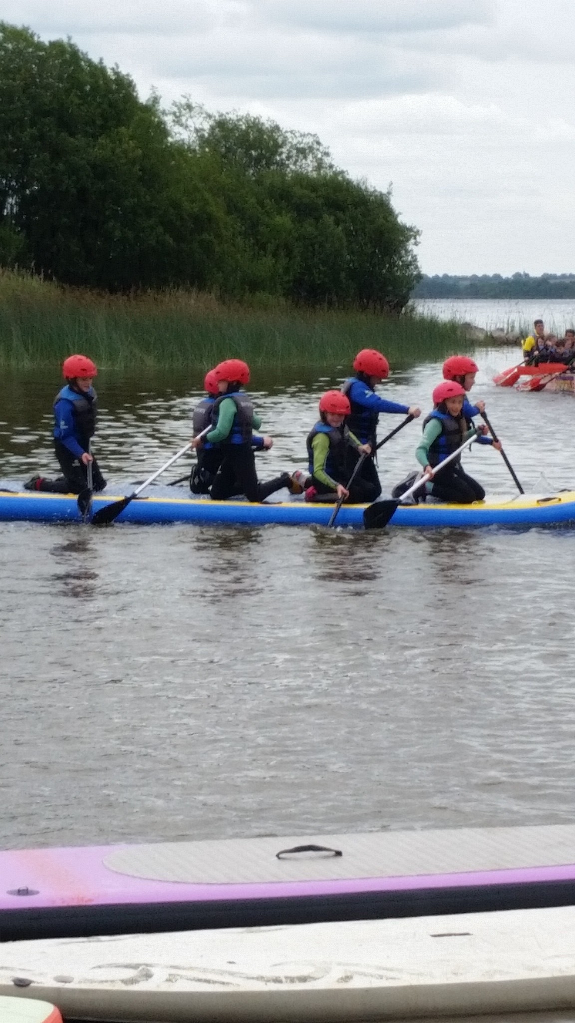 Pupils from 3rd to 6th class headed off to Baysports in Athlone for their school tour. Everyone had an early start and by 7.15 a.m. we were on the bus and ready for road. When we reached Athlone the pupils met their supervisors and were kitted out in wetsuits. Then, a day of fun began. We started off on the water inflatables before moving onto rafting, canoeing, team building challenges and kayaking. Everyone had a great day and there were a lot of tired people on the bus home.