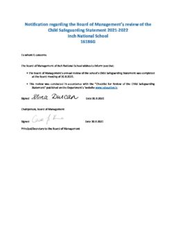 Notification regarding the Board of Management’s review of the Child Safeguarding Statement 2021-2022